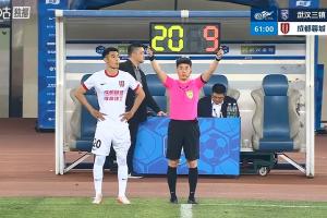 比赛第61分钟,蓉城换人调整,王子铭换下费利佩