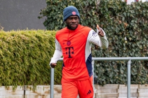 拜仁官方社媒晒出照片,确认戴维斯今天进行了跑步训练。
