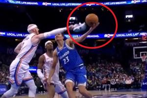 但是,裁判吹了他干扰球+技犯。